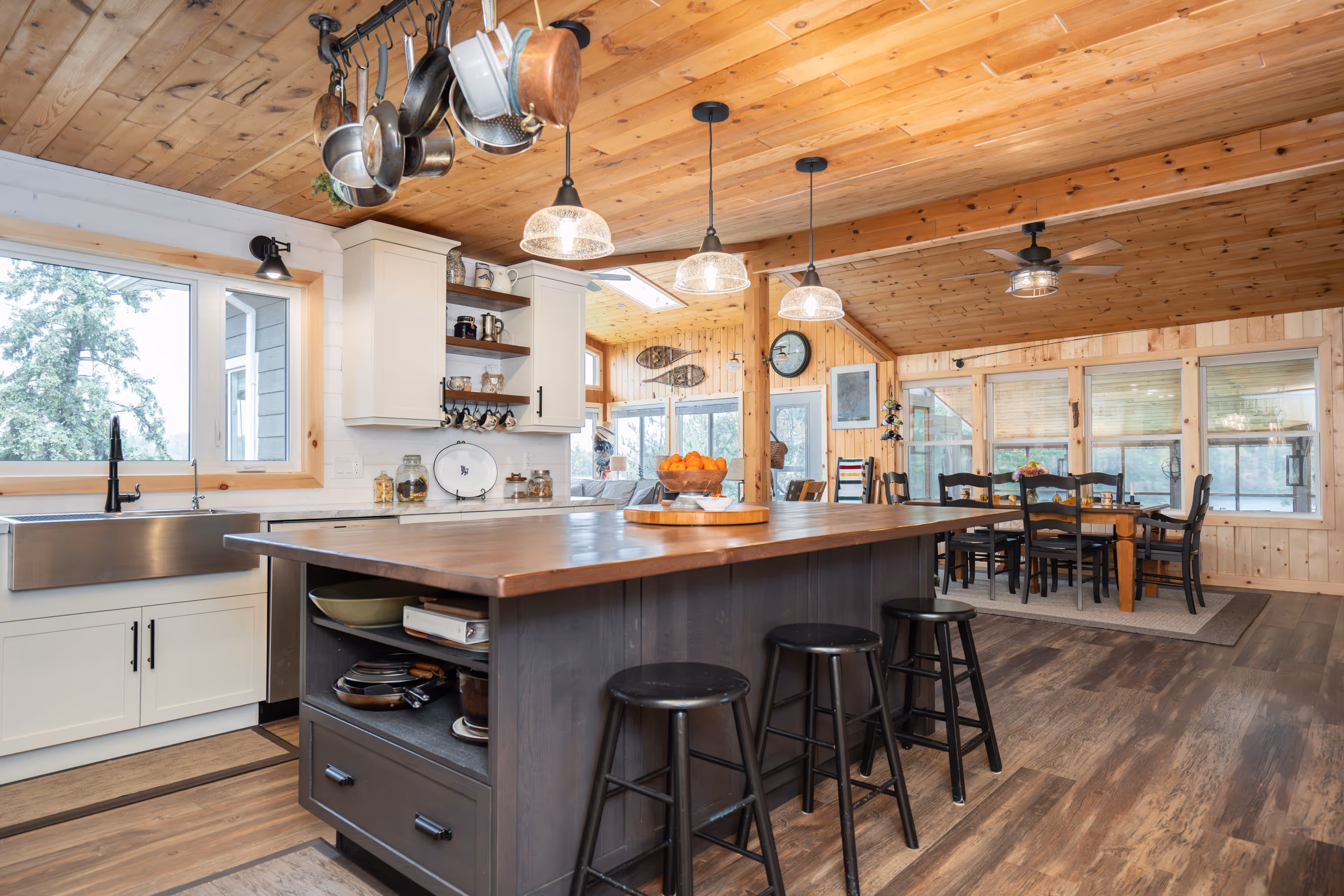 The Watson Island project involved a complete renovation of the main floor of a family cottage, transforming it into a modern three-season retreat. The renovation included a new solar upgrade to enhance energy efficiency and sustainability. The updated space now offers a refreshed and functional environment for family gatherings and relaxation.